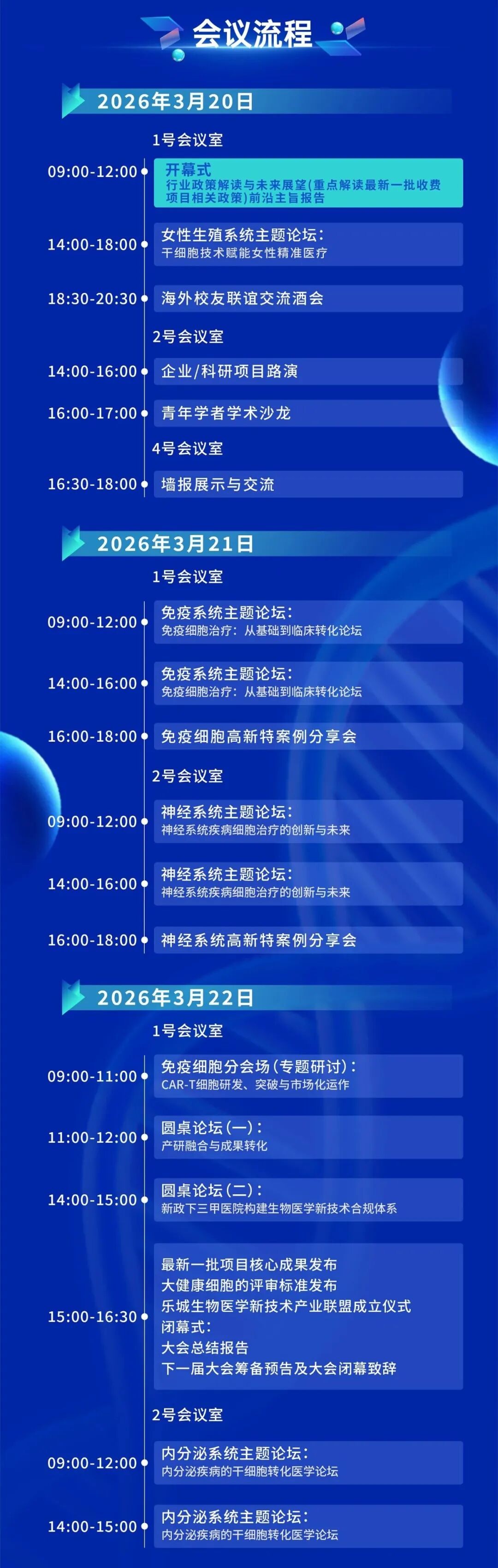 设置女性生殖系统、免疫系统、神经系统、内分泌系统四大细胞治疗专场,系统构建“学术—基础研究—产品—临床应用—监管体系”全链路。